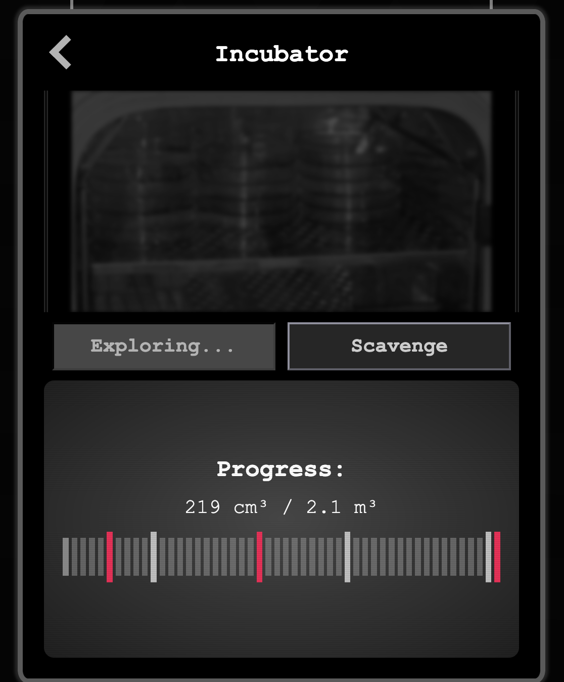 I've tried resetting a few times when I get to this point, assuming this is just the way to meta-progress, but it doesn't make any difference. I don't see any meta-progression choices that speed up exploration, and there aren't enough resources to scavenge to improve exploration rates.